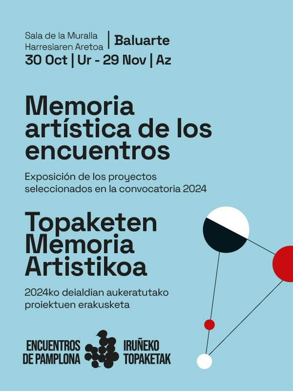 La Memoria Artística de los Encuentros es una convocatoria creada en el marco de la bienal de cultura, arte y pensamiento Encuentros de Pamplona / Iruñeko Topaketak que tiene el objetivo de ofrecer a artistas la posibilidad de desarrollar obras artísticas de nueva creación basadas en las ideas y temáticas desarrolladas en los diálogos, conferencias y actividades de la bienal.