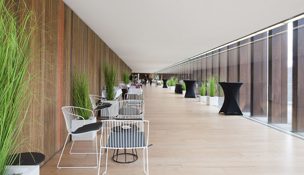 BALUARTEko hirugarren solairua Ziudadela parkera eta plazara irekitzen da, atondoan eta korridoreetan kristalezko pareta handien bidez. Ciudela eta Luneta aretoak albo banatan dituela, 500 m2 baino gehiagoko atari hau espazio egokia da kafe-etenetarako edo lan-bazkarietarako, produktu-aurkezpenetarako, B2B bileretarako edo merkataritza-erakusketa txikietarako.