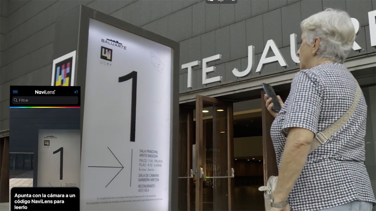 Una de las primeras personas usuarias en probar el sistema ha sido Carmen Solano, ciega total, quien recientemente ha asistido a un concierto en Baluarte acompañada por su perro guía y comprobó in situ el funcionamiento de los nuevos códigos. “Es una aplicación que cuando la puse en el móvil me resultó muy interesante por la cantidad de información que ofrece y porque, además, te orienta. Nunca me había planteado cómo era el edificio o la posibilidad de que no fuese rectangular, y gracias a NaviLens descubrí que tiene forma de ‘L’”, explica. Su experiencia evidencia el impacto real que esta tecnología tiene en la autonomía y percepción del espacio por parte de las personas ciegas.